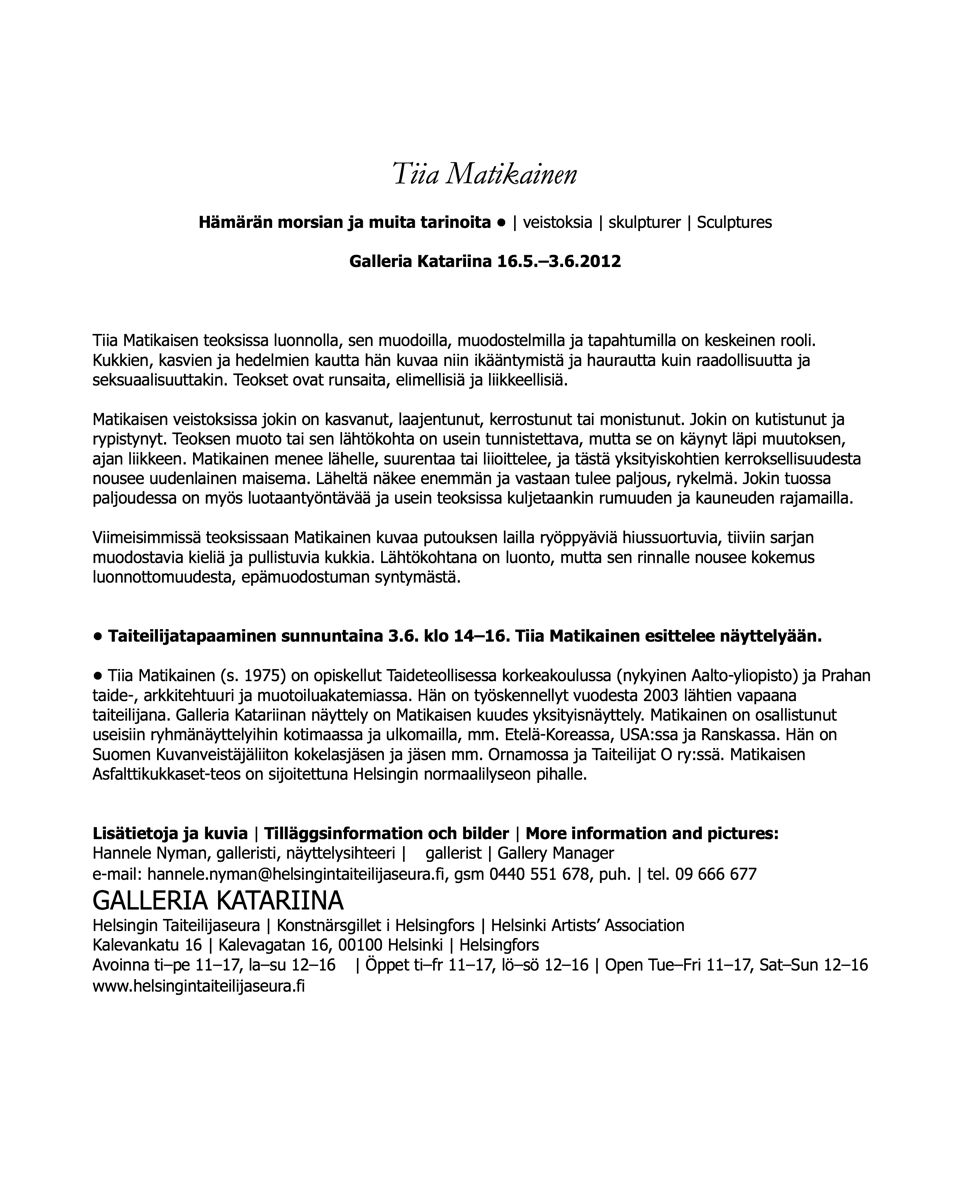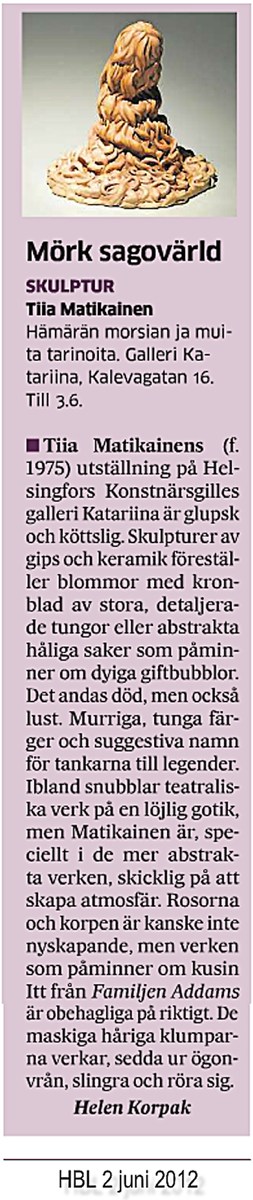 • Näyttelyarvostelu Hufvudstadsbladetissa 2.6.2012